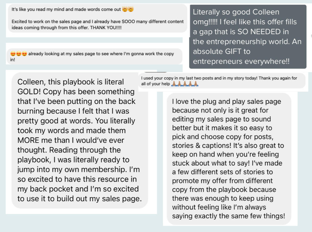 I want you to be able to fully visualize your playbook in action which is why you'll get 1 week of my direct copy and messaging feedback in your Google docs. This will give you the confidence to need to ensure that you're leveraging your new messaging angles.